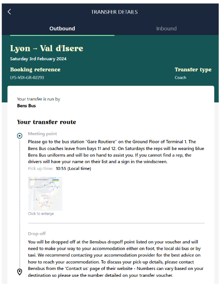 You can find all the information you need for your coach transfer by logging into your MyBooking portal.