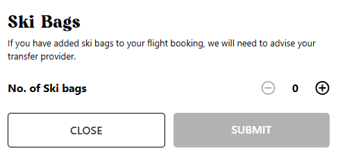 If you have a private transfer, please log in to your MyBooking portal and select the 'If you have ski bags' button. This allows you to select how many bags you have with you.